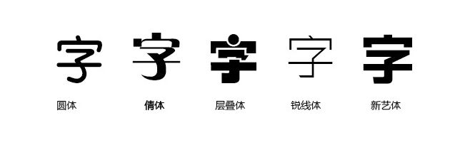 黑體本身就屬于比較現(xiàn)代的一種字體,所以它的字面和胸線都比較大,這樣比較容易閱讀,根據(jù)不同需要,設(shè)計(jì)出橫豎筆畫不同粗細(xì)的黑體字形來,最基本的就是第一種,纖細(xì)的黑體字給人輕,秀氣的感覺,粗厚的黑體字給人重,粗壯,力量的感覺,這些字形都是根據(jù)不同的需要設(shè)計(jì)而來的。中文字形除了宋體和黑體這兩種基本字形以外,還有很多不同種類的,比如